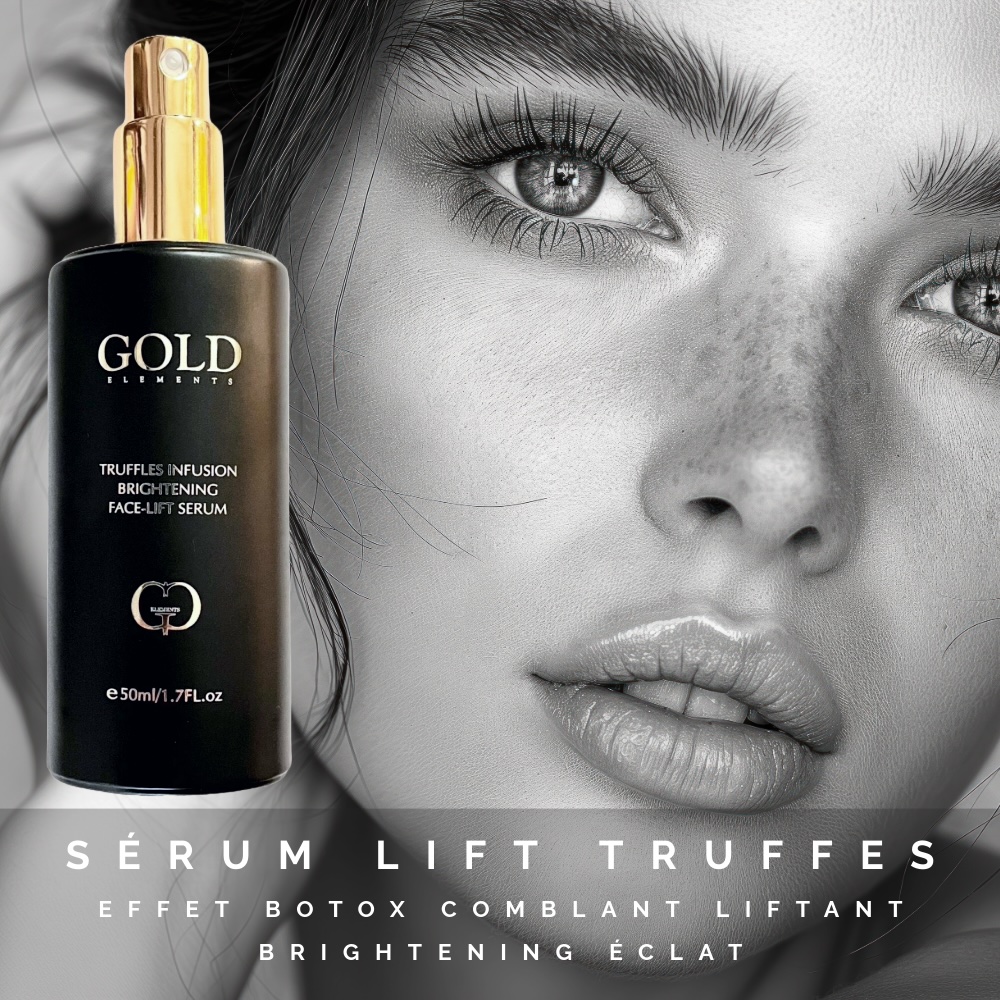 Sérum anti-rides, liftant et unifiant. Le “Face-Lift Serum” transforme votre peau en quelques secondes ! Il contient un concentré puissant d’actifs anti-âge dont l’or 24k et les extraits de truffes et apporte à la peau un effet lifting, anti-rides comblant, repulpant et lissant immédiat.